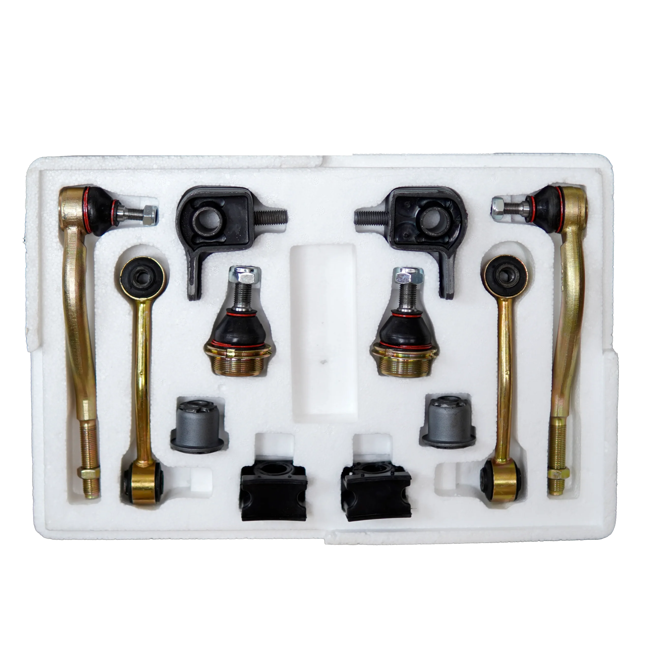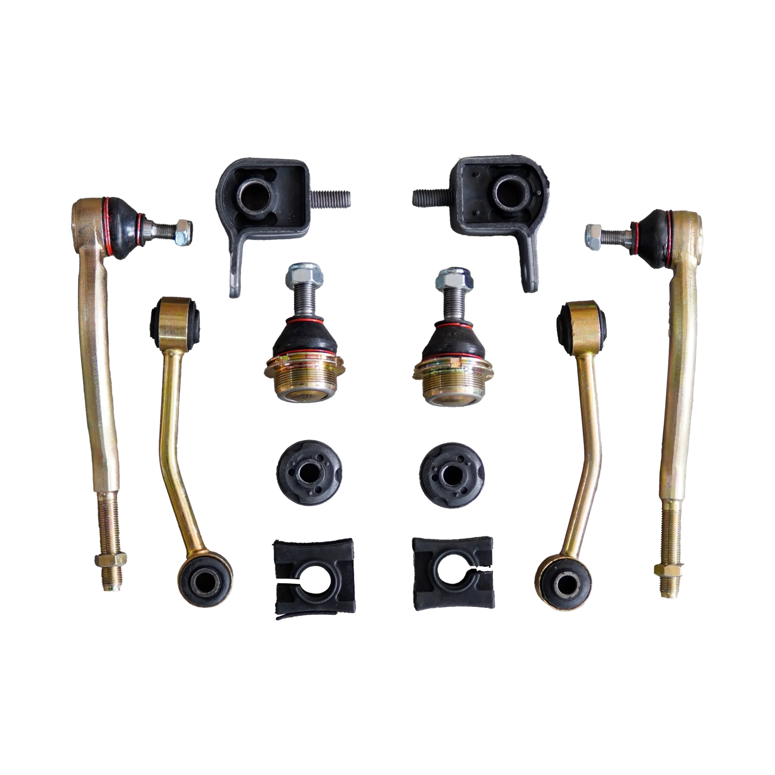 شامل قطعات: جناغی ، سیبک فرمان ، سیبک زیر کمک ، میل موجگیر ، لبه دار و لاستیک چاکدار از هر کدام به تعداد 2 عدد